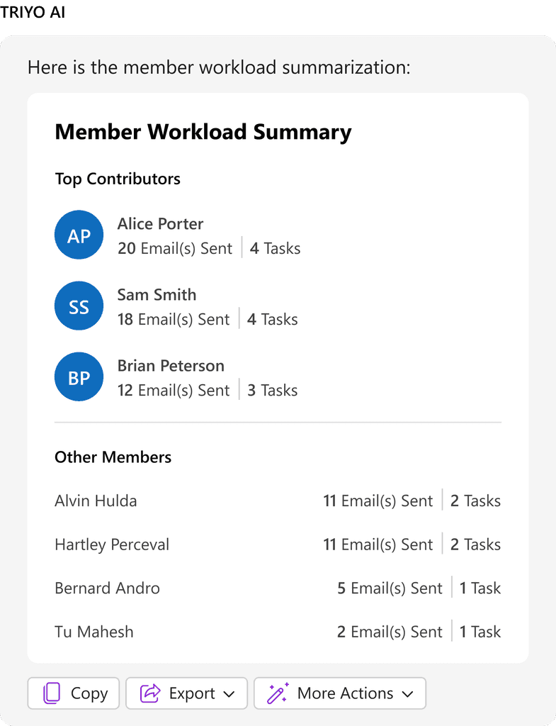 Implementing an AI-powered chatbot would be an ideal starting point for introducing AI capabilities within TRIYO. We believe it can significantly enhance task management and communication tracking of TRIYO by providing actionable insights and assisting with manual works. By identifying patterns and key events that would otherwise be time-consuming to detect, the chatbot can optimize workflows and improve overall efficiency.