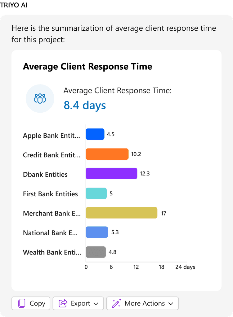 Automatically tracks the most recent client responses and flags overdue follow-ups or critical responses requiring attention.