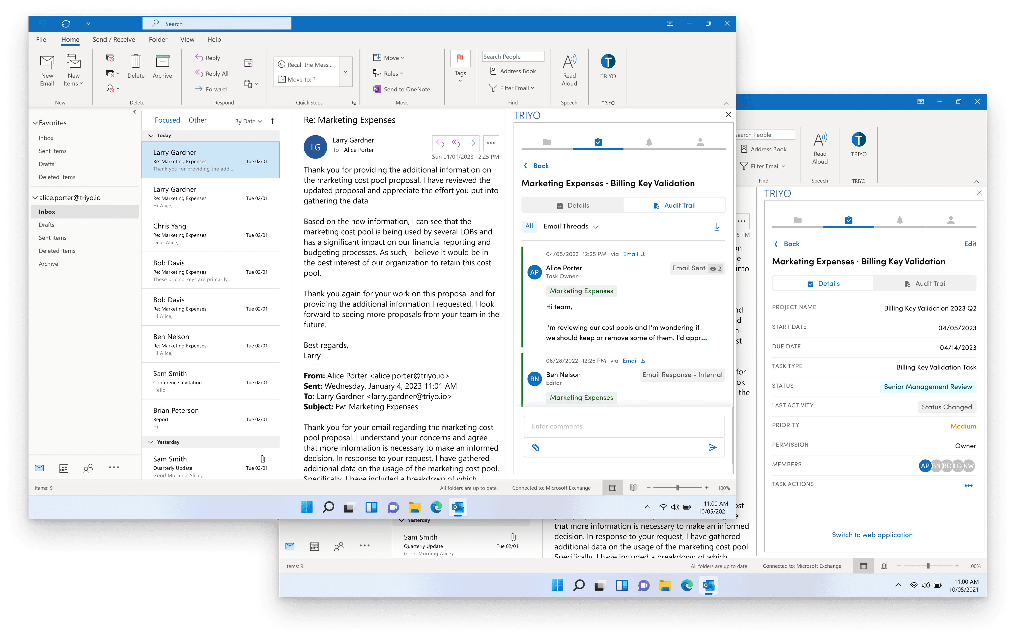 TRIYO is dedicated to enhancing traditional email-based collaboration by improving its transparency, efficiency, and convenience across various business processes. TRIYO Outlook Add-in helps users create email-based tasks and tracks all emails.