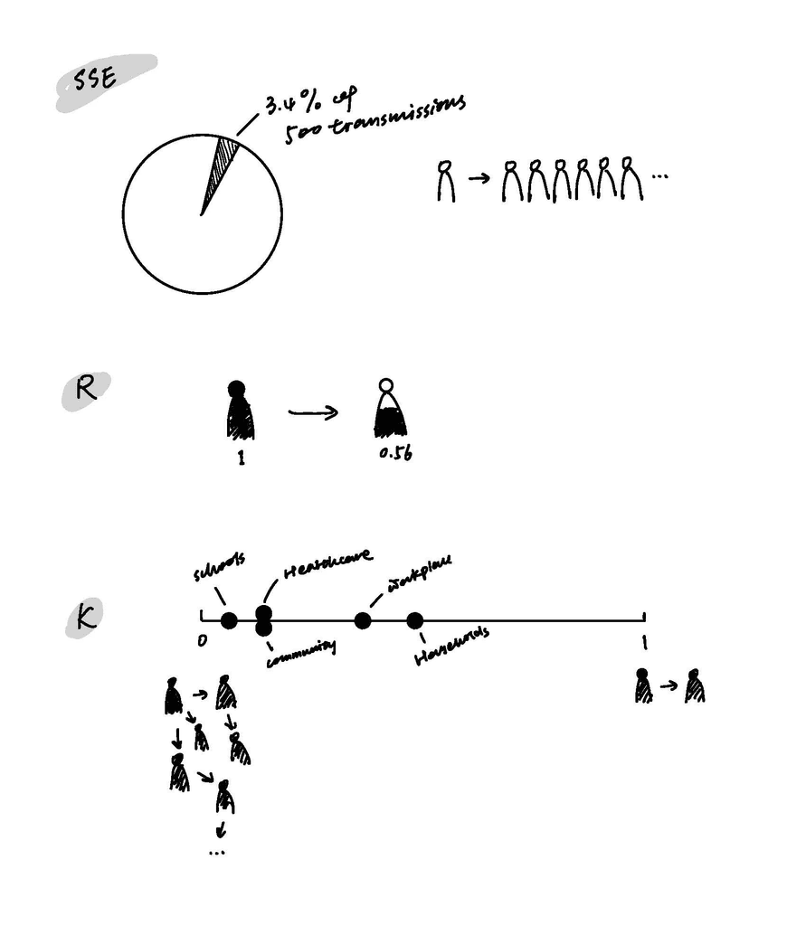 Superspreading Events (SSEs): Defined as cases where one person infects more than 6 others.